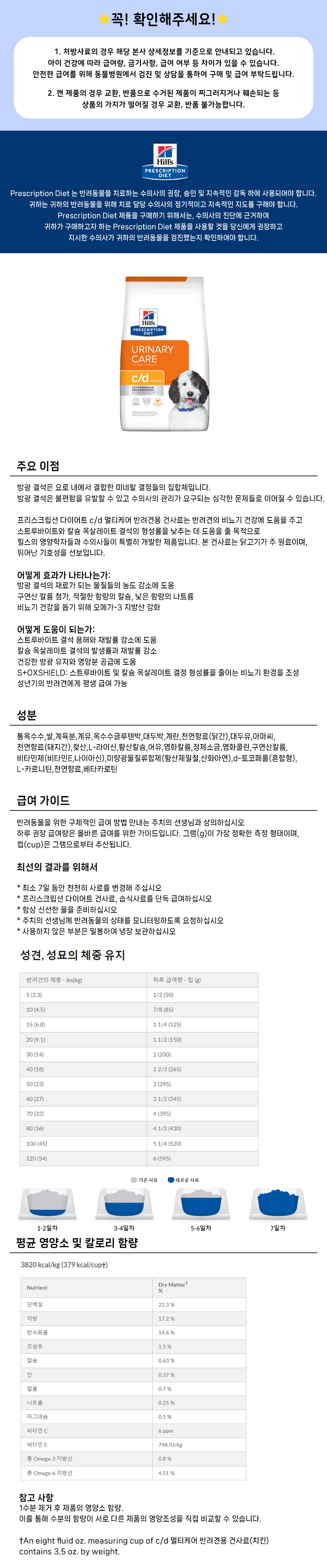 [오늘출발]힐스 독 c/d cd 멀티케어 3.85kg 강아지 방광 결석 처방사료