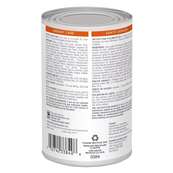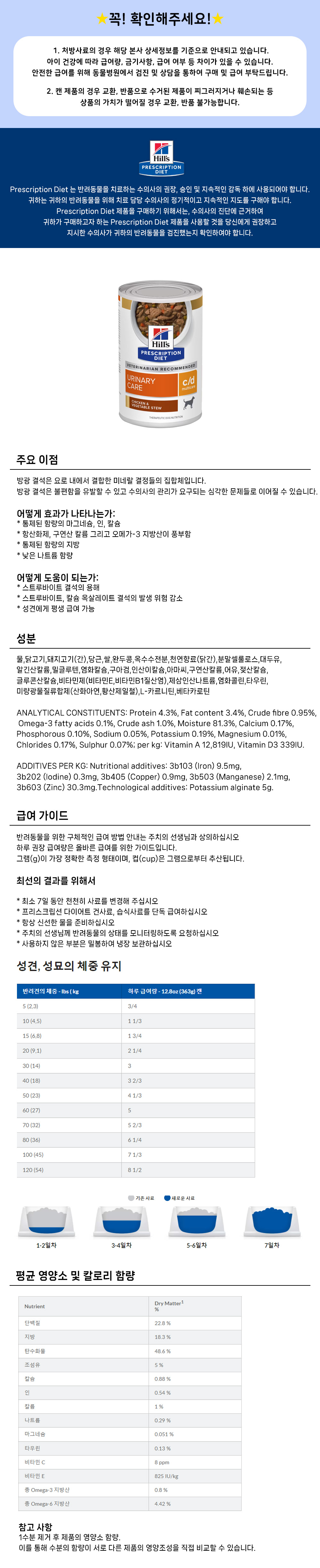 힐스 독 c/d cd 멀티케어 스튜 354g 강아지 방광 결석 처방 습식사료(치킨&야채 스튜)