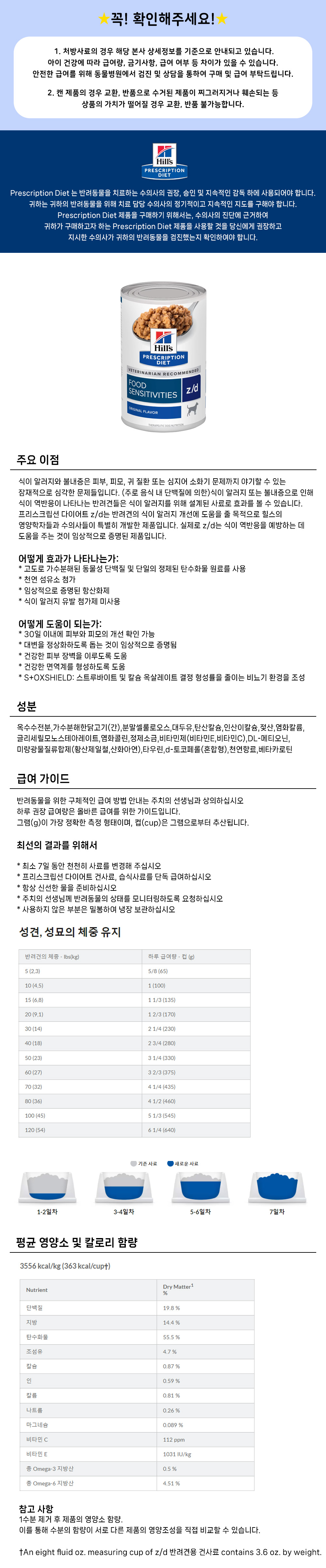 힐스 독 z/d zd 캔 370g 강아지 식이알러지 가수분해 처방 습식사료