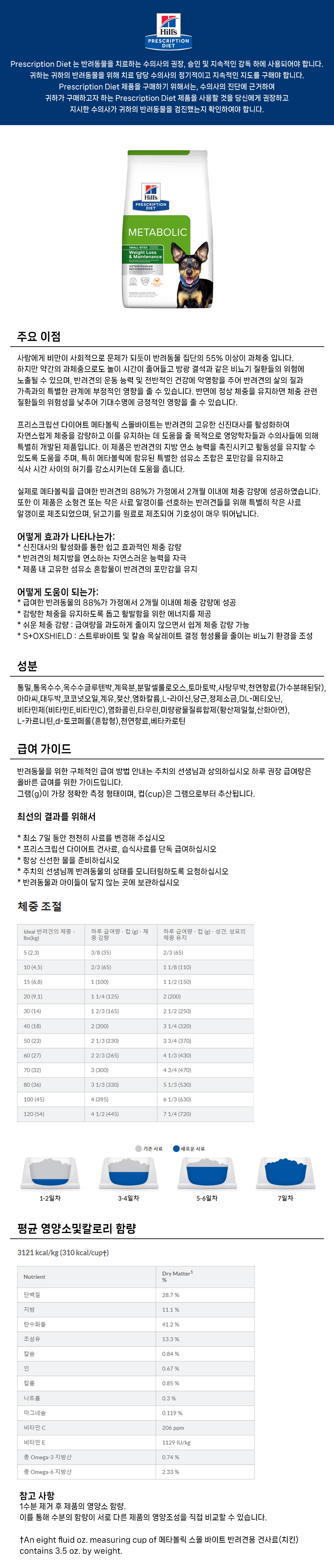 [오늘출발]힐스 독 메타볼릭 3.5kg 강아지 과체중 비만 체중관리 처방사료 metabolic
